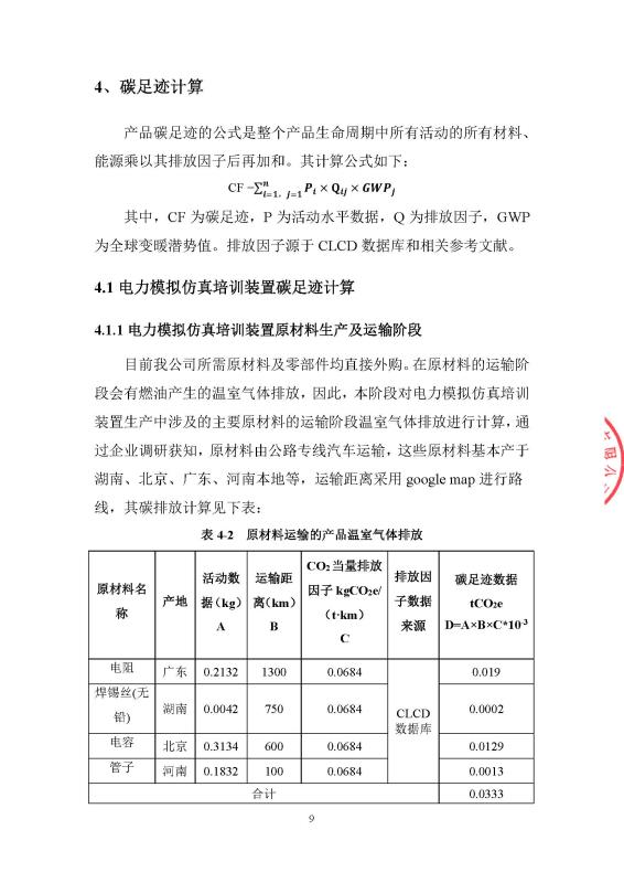 产品碳足迹报告