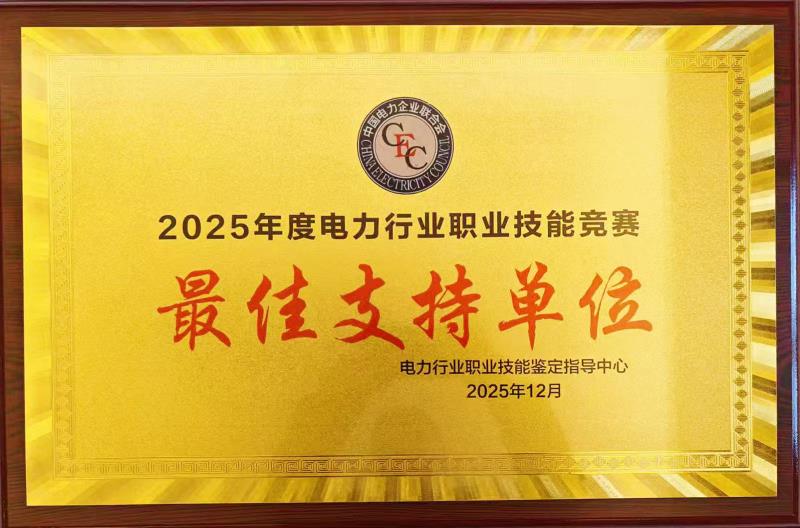 近日,在2025年电力行业职业技能竞赛工作总结会上,电力行业职业技能鉴定指导中心为万特电气颁发了“最佳支特单位”的荣誉奖牌。这不仅是对万特电气极大的认可,更激励着万特电气新的一年精益求精、再接再励。