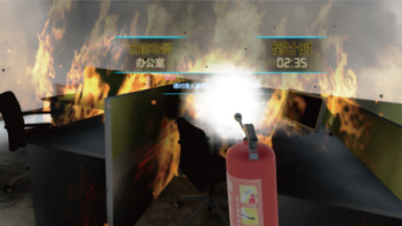 本系统提供了一系列消防灭火安全演练VR+ 电力仿真场景,让作业人员在不同场景模拟演练,身临其境地面对真 实火场进行扑救和逃生;学习控制室、变电站、办公室、家庭场景发生火灾后的逃生路线、正确逃生方法及应急 处置方法等。